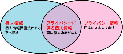 なお、個人情報とプライバシー情報を混同することが多いが、2つは法律的にはまったく異なる概念のものである。